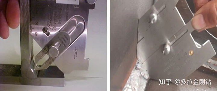 概述:目视检测是一种常用的检验方法,它以肉眼观察为主,必要时利用放大镜、量具及样板等对目视尺寸和焊缝表面质量进行全面检查。焊缝的目视检查主要通过量规或其他辅助工具来测量所谓的焊缝几何偏差,例如:盖面层余高过大、根部高度过大或表面的 不规则性,入咬边、接头缺陷、飞溅等。辅助工具和量规的精准度必须符合要求的公差值。